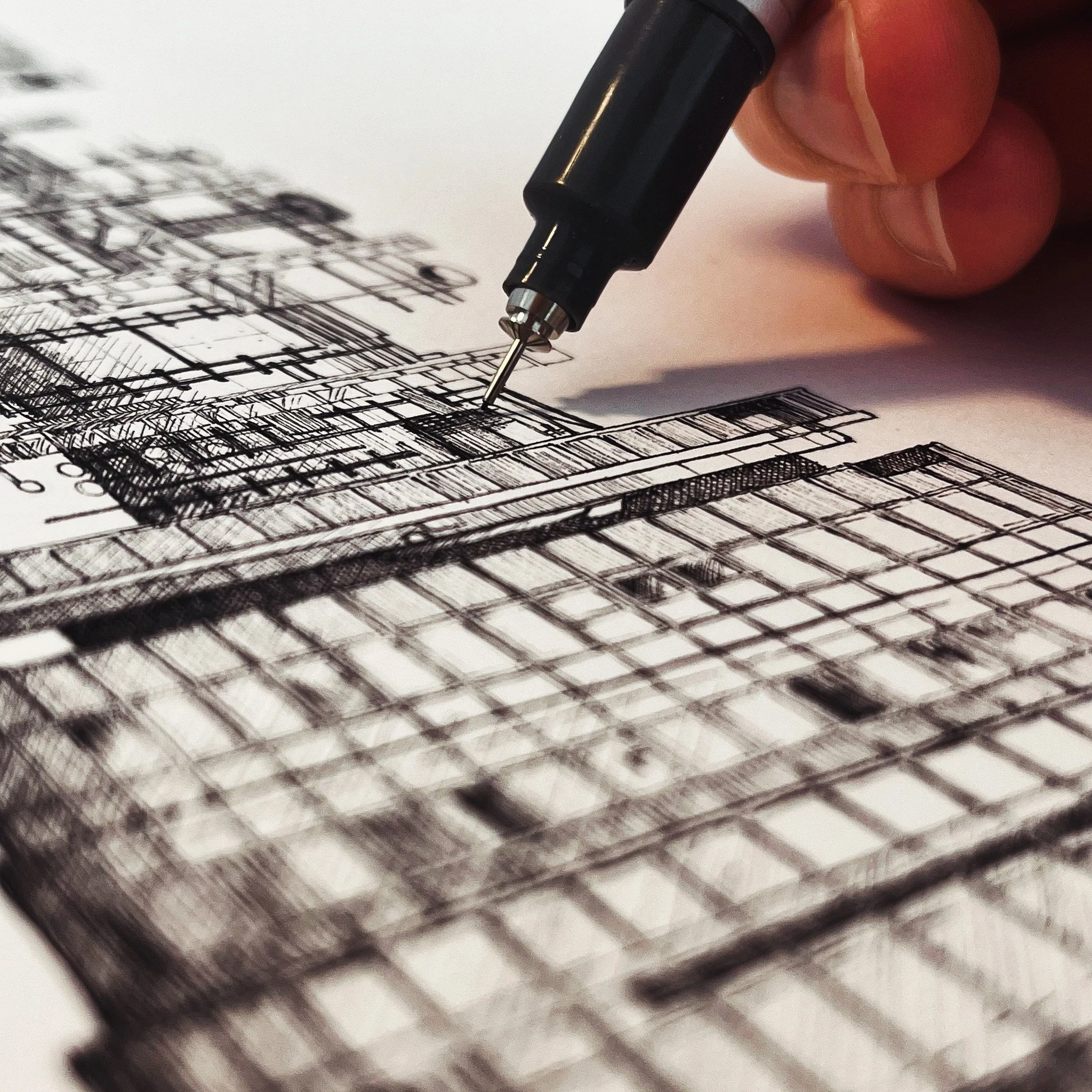 After relocating to London in 2019 to start a career in kitchen design, he ignited his passion for creating intricate, captivating artwork. Working his way through his local architecture and then taking on commissions.